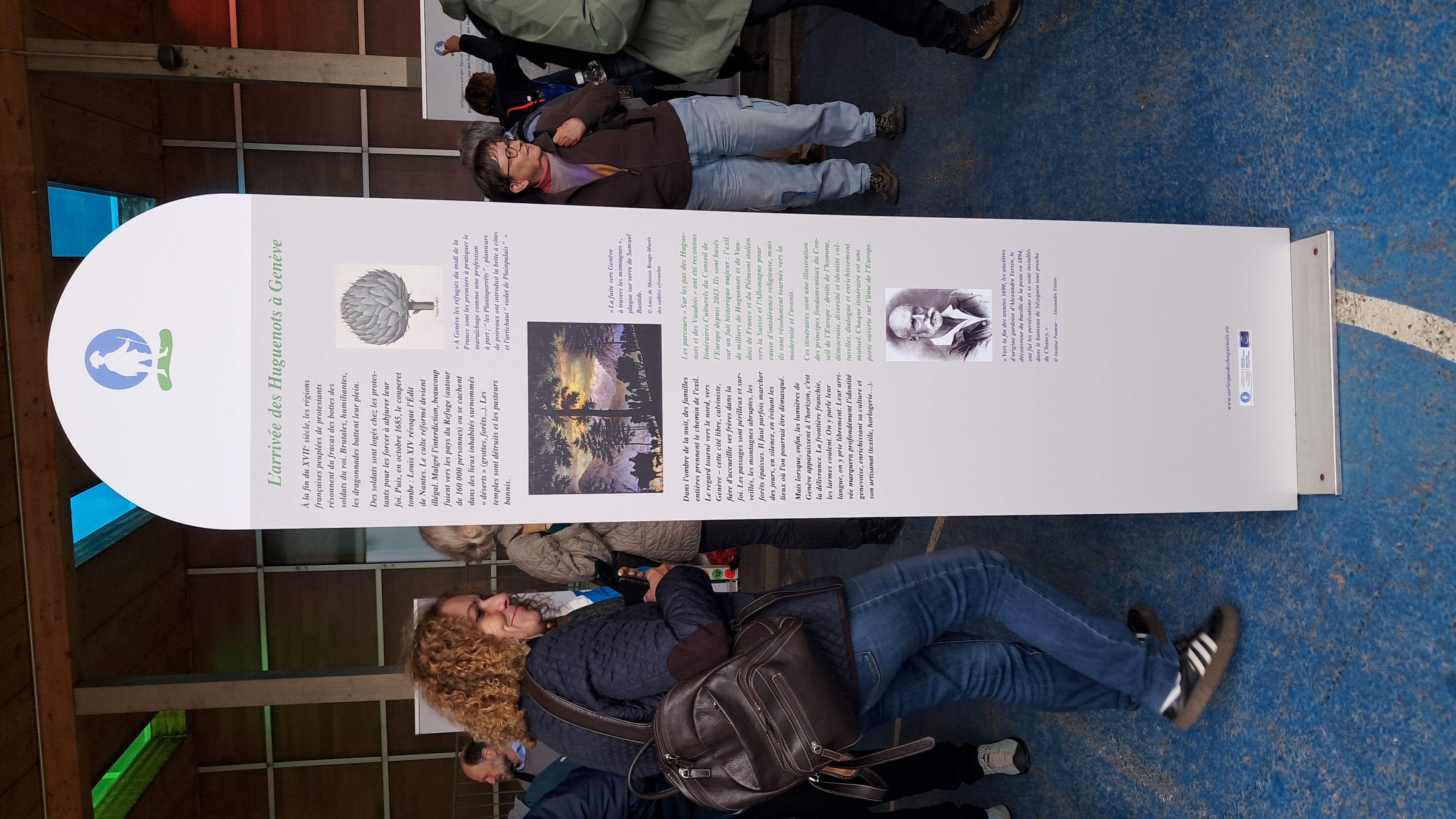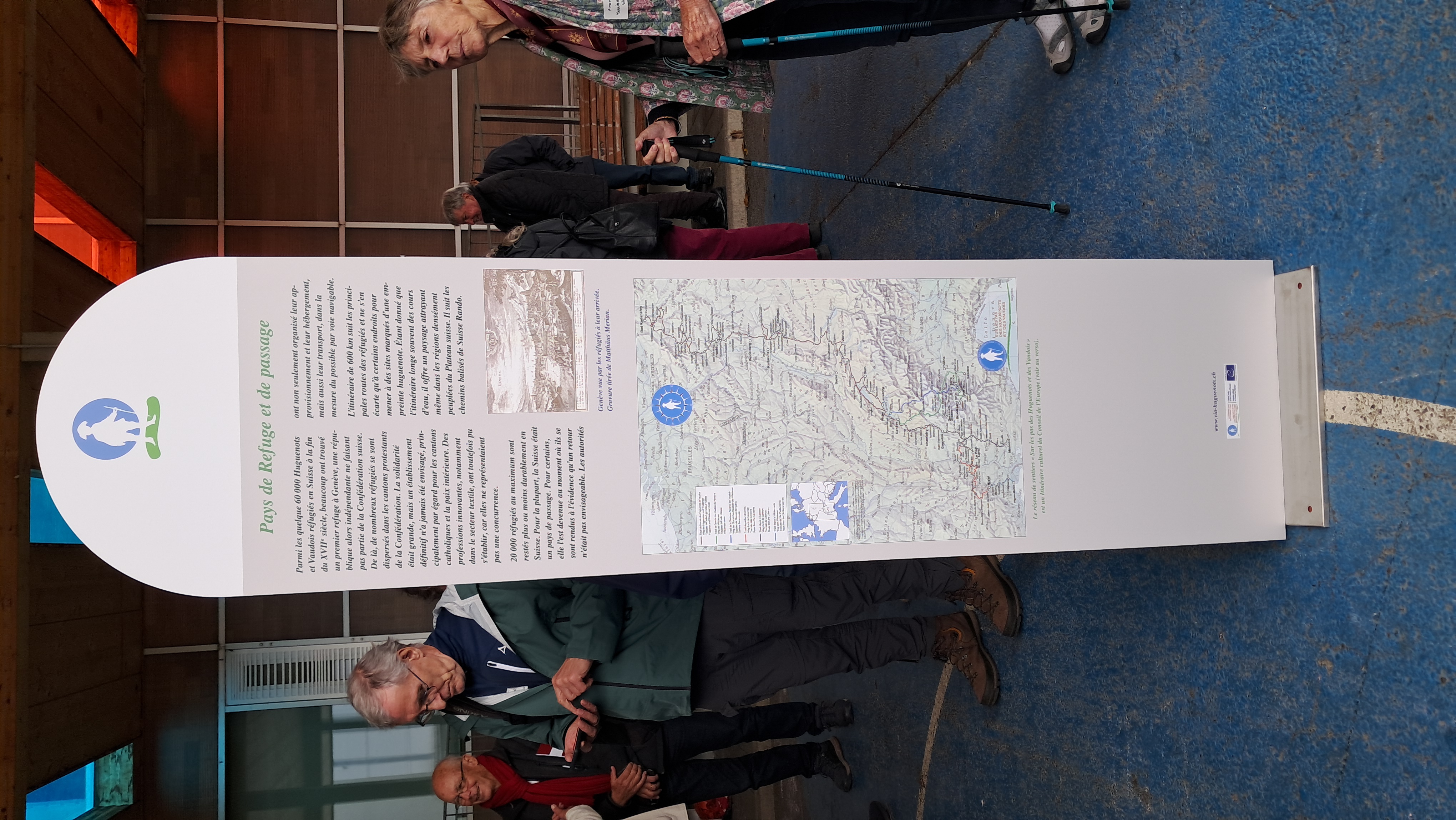 Im Anschluss enthüllten Laure Alvarez für die französische Fédération und Pierre-André Glauser eine Tafel, die wie ihr 2023 an der deutsch-schweizerischen Grenze installiertes Pendant gestaltet ist: auf einer Seite informiert sie über die Lokal- und Regionsgeschichte im Grenzgebiet und auf der anderen über die Europäische Kulturroute. Diese Tafel wird direkt am Grenzübergang des Wegs aufgestellt.